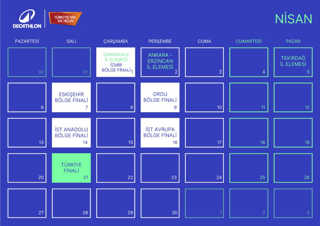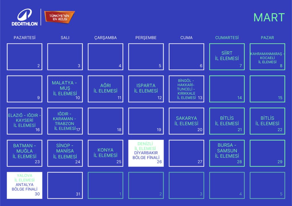 DECATHLON TÜRKİYE’NİN EN HIZLISI 2026 yılı yarışma takvimine ulaşabilirsiniz.
